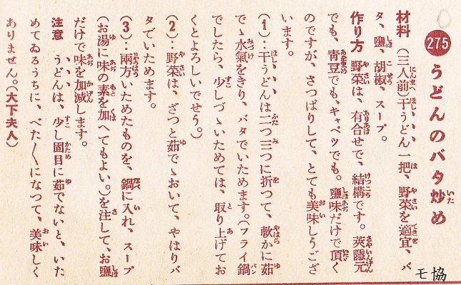 「うどんのバタ炒め」(昭和7年)