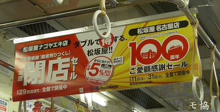 ▼ 吊廣告で、松坂屋名古屋驛店※の閉店セールの
