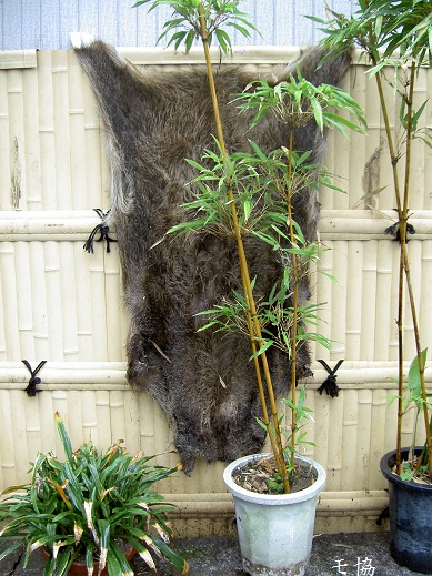店の横の壁には、毛皮が吊り下げられてありました。