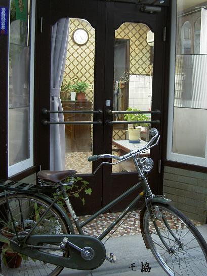 入口に自轉車を置いて冩眞を撮りました。