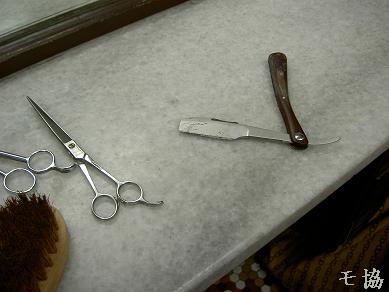 剃刀をあてて貰ひます。此處では