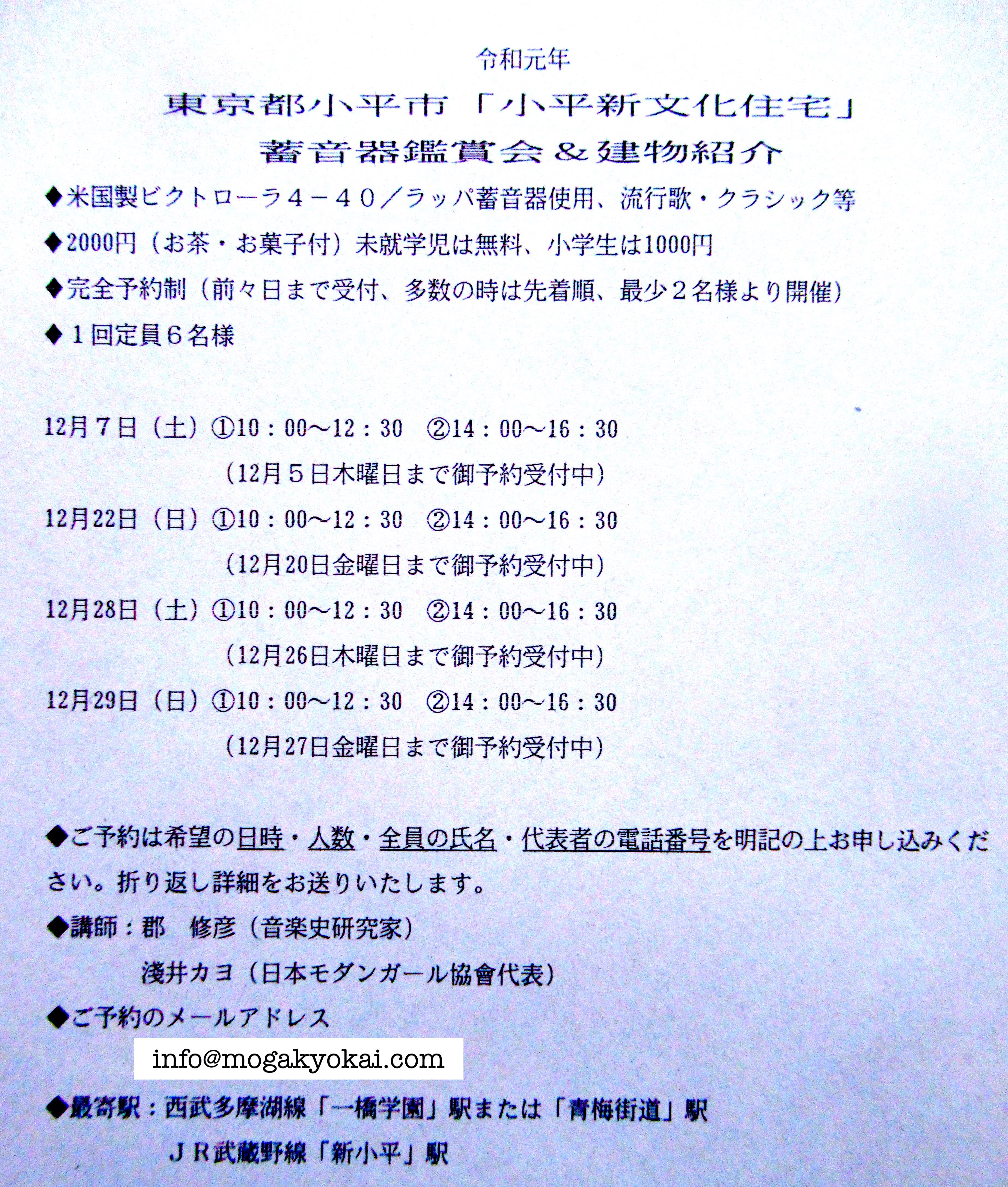 「蓄音器鑑賞会&建物紹介」のご案内をいたします。